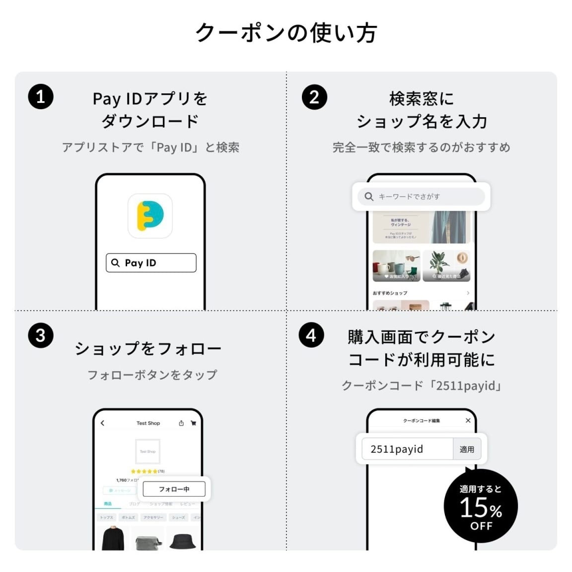 Pay IDアプリにて対象の決済方法で支払うと、購入金額の5%がポイント還元されます!